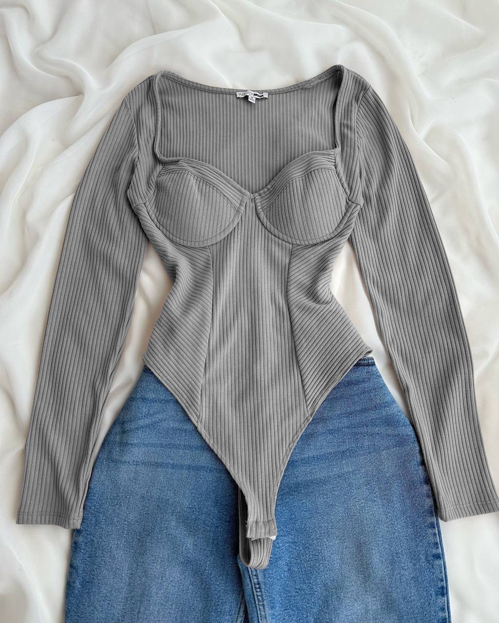 Базовый качественный боди с длинным рукавом с чашечками серый