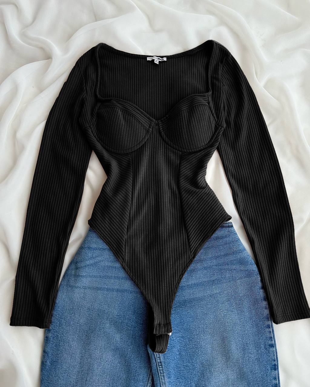 Базовый качественный боди с длинным рукавом с чашечками. Идеально совмещается с любым низом.
