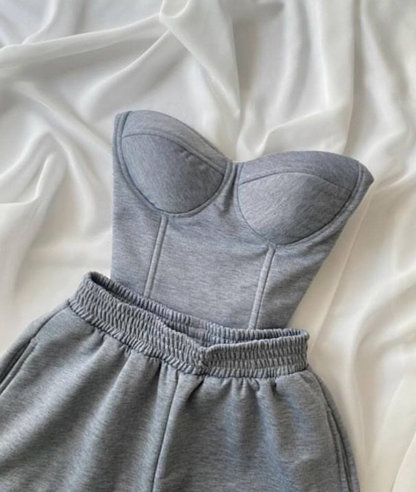 Костюм: топ с чашками + брюки палаццо