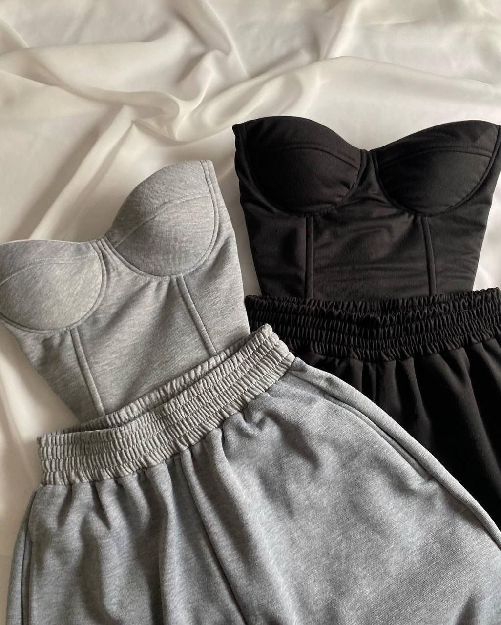 Костюм: топ с чашками + брюки палаццо
