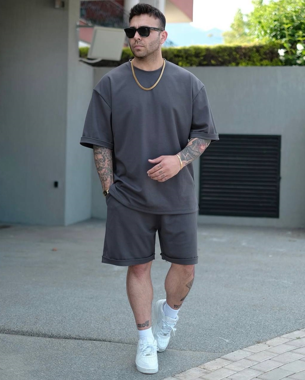 Головна » Магазин » Одяг » Чоловічі костюми » Базовый мужской костюм (футболка+шорты) графит