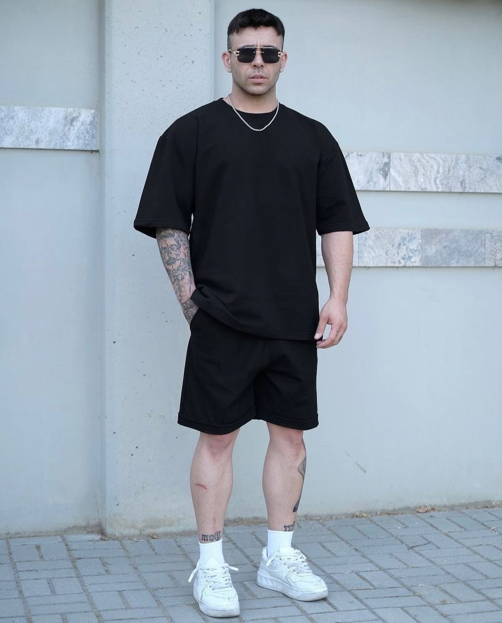 Головна » Магазин » Одяг » Чоловічі костюми » Базовый мужской костюм (футболка+шорты) черный