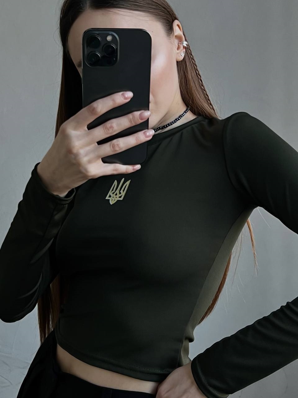 Базовый обтягивающий топ с патриотической символикой в виде «Золотого Трезубца»