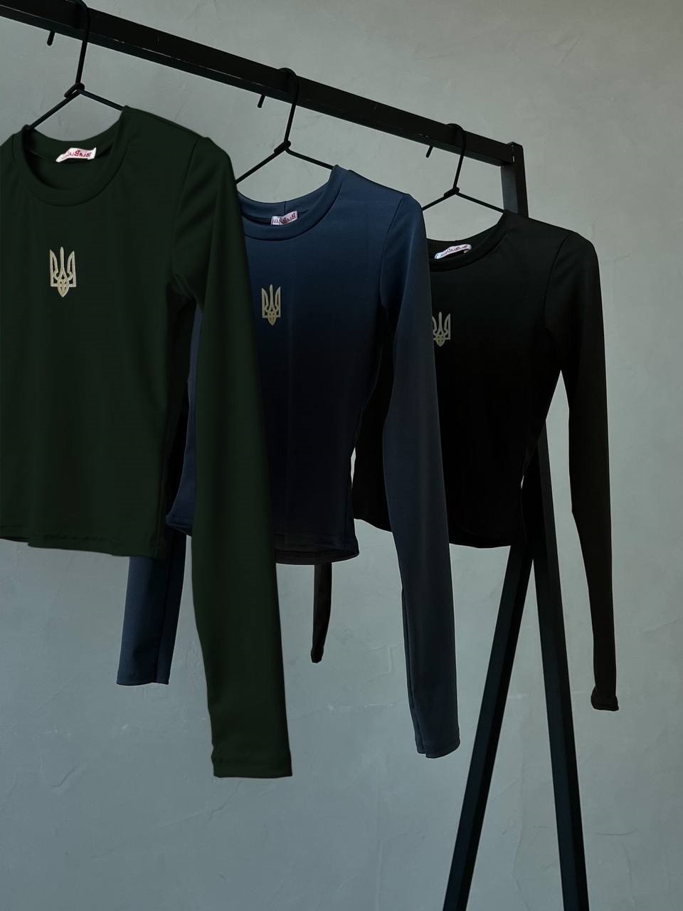 Базовый обтягивающий топ с патриотической символикой в виде «Золотого Трезубца»