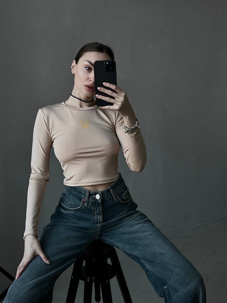 Базовый обтягивающий топ с патриотической символикой в виде «Золотого Трезубца»