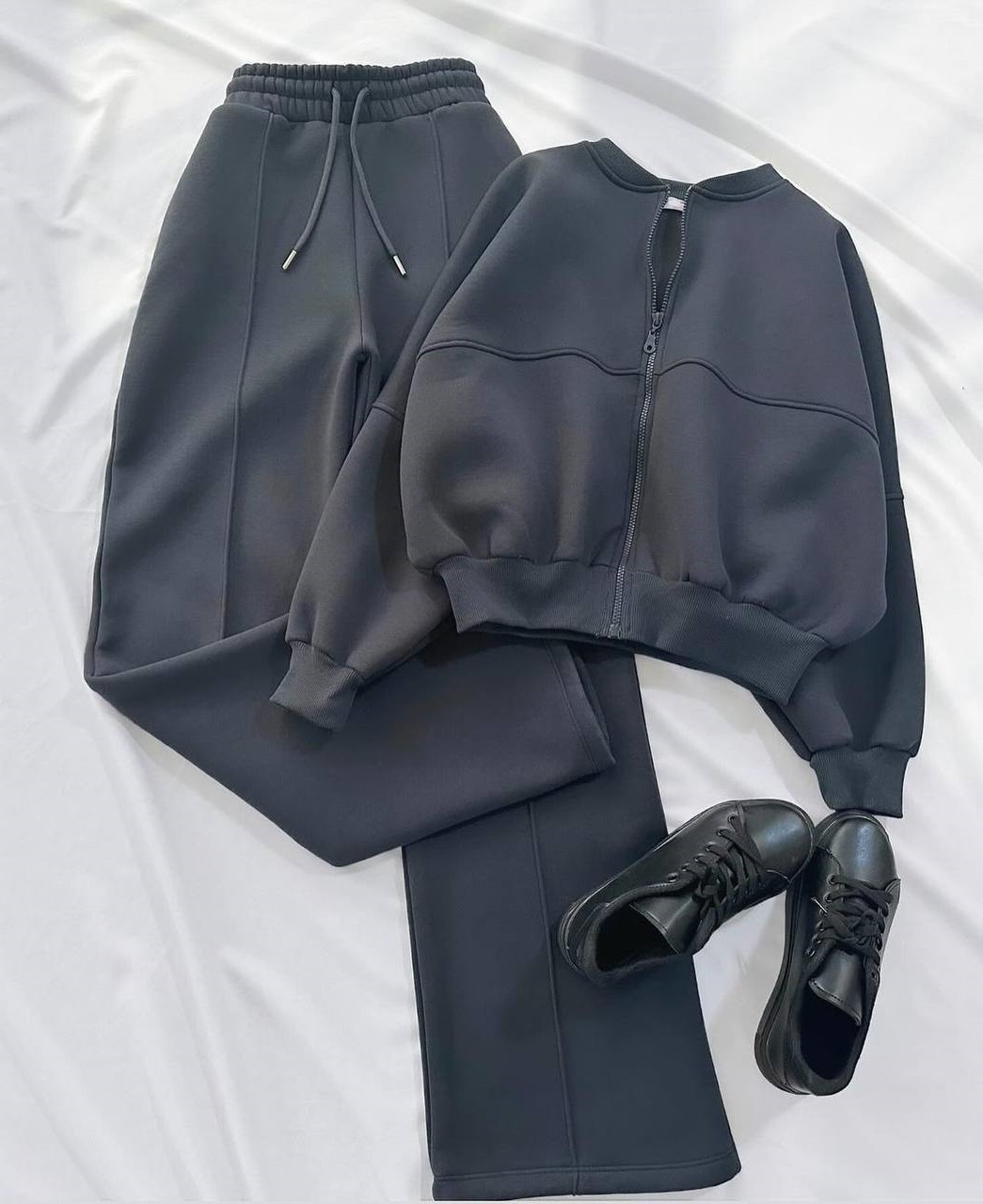 Будьте першим, хто залишив відгук “Базовый оверсайз костюм из двухнитки (брюки со стрелками+кофта на молнии+воротник стойка) графит”“