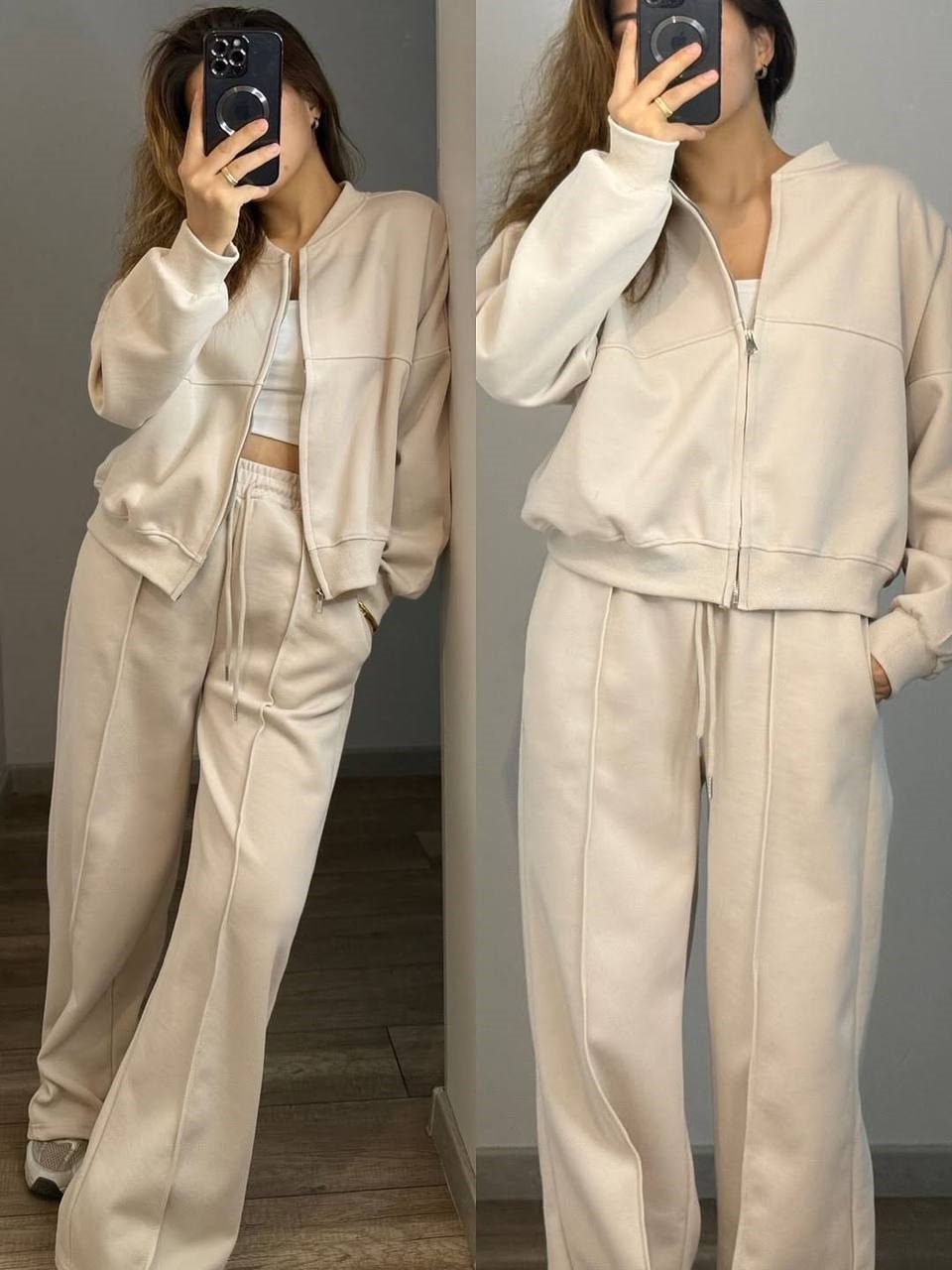Будьте першим, хто залишив відгук “Базовый оверсайз костюмчик из двухнитки (брюки со стрелками+кофта со спущенным плечом) бежевый”“