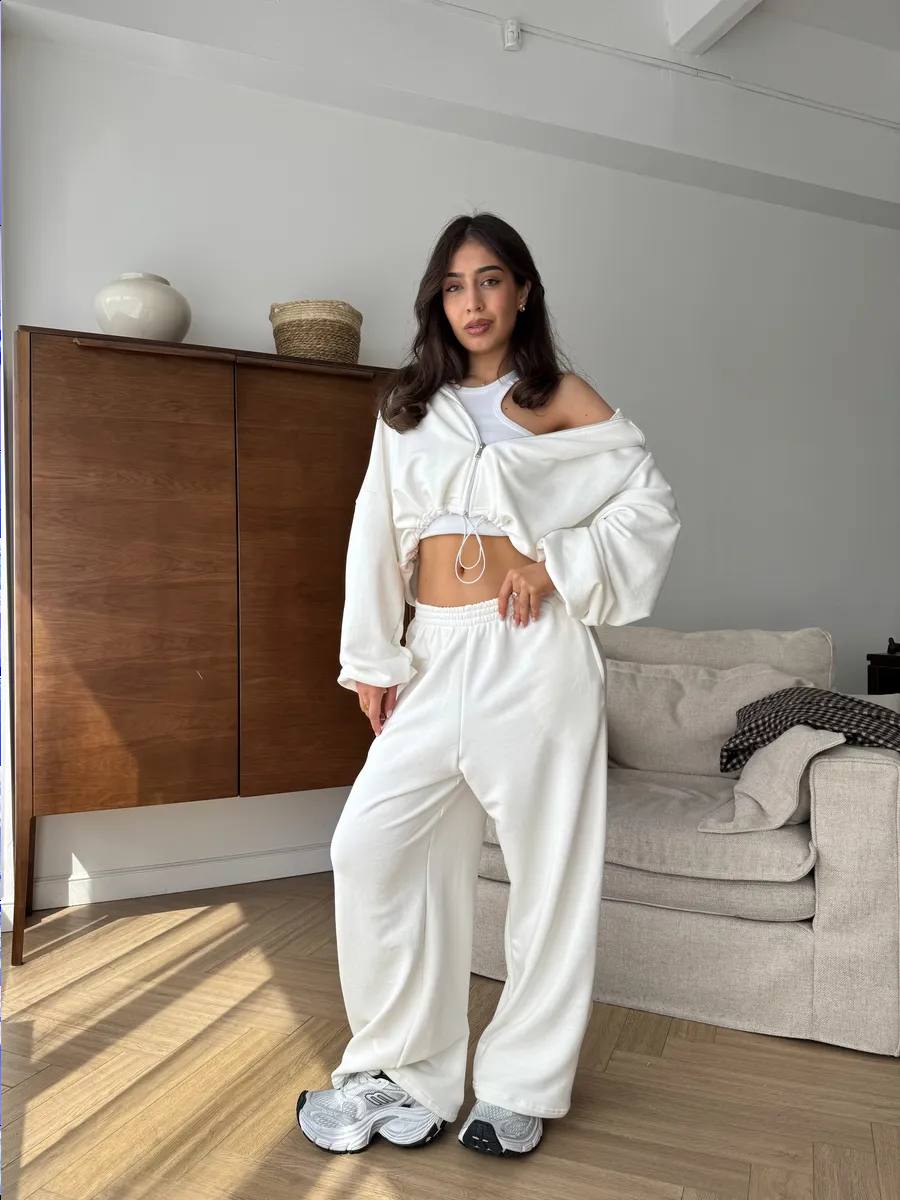 Базовый спортивный костюм: брюки свободного прямого кроя+кофта на резинке молоко