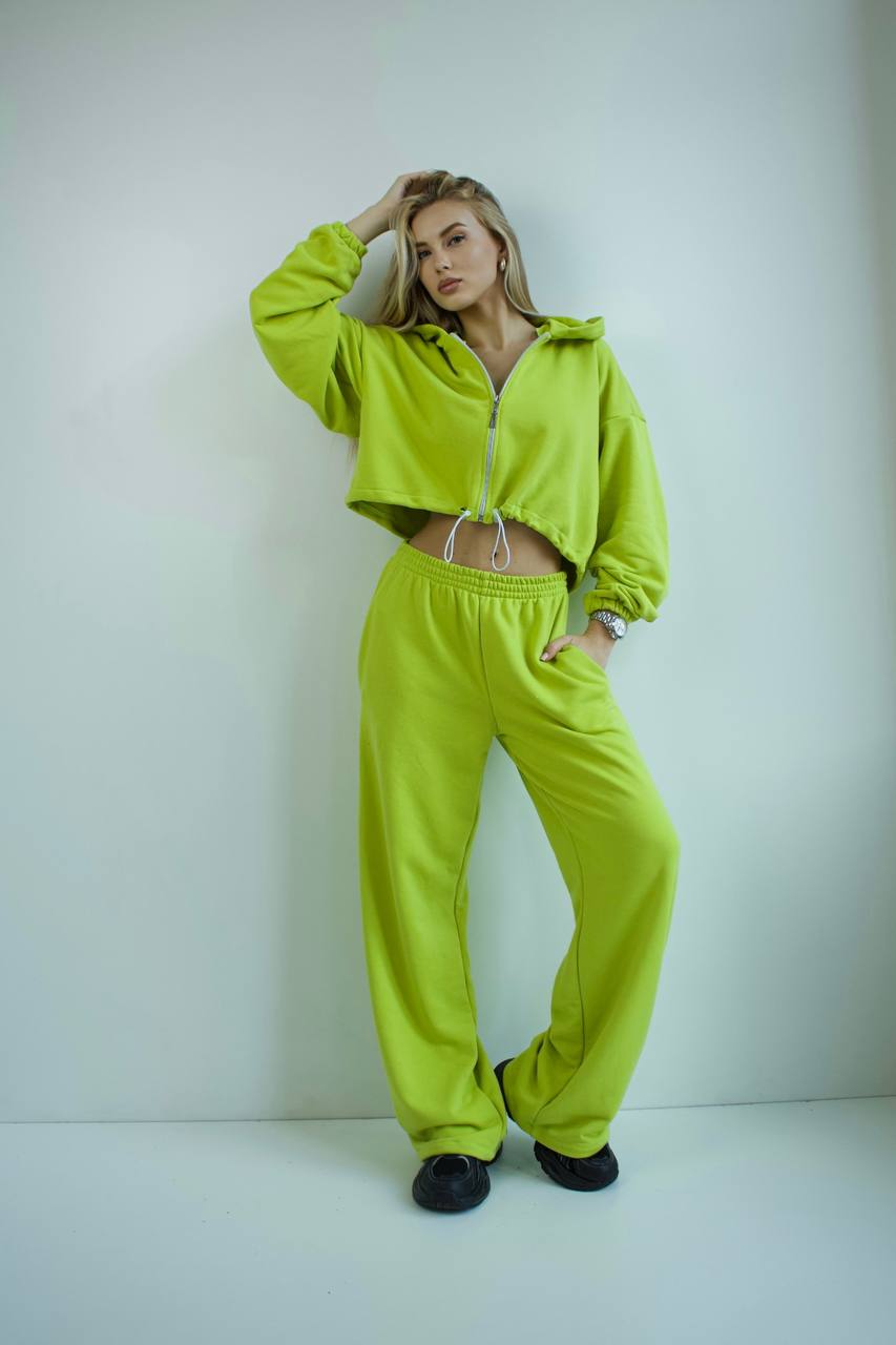 Будьте першим, хто залишив відгук “Базовый спортивный костюм: брюки свободного прямого кроя+кофта на резинке салатовый”“