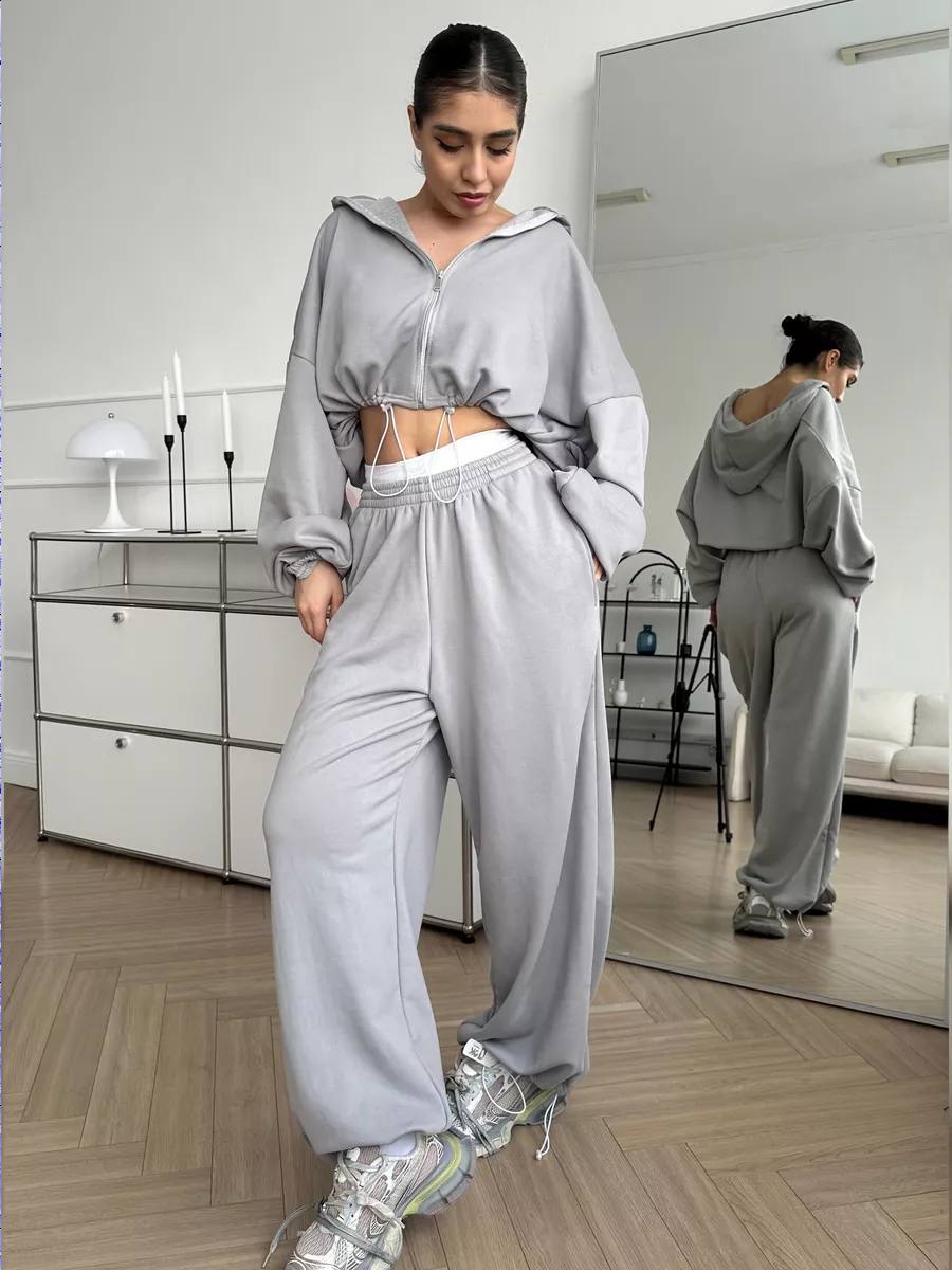Будьте першим, хто залишив відгук “Базовый спортивный костюм: брюки свободного прямого кроя+кофта на резинке серый”“