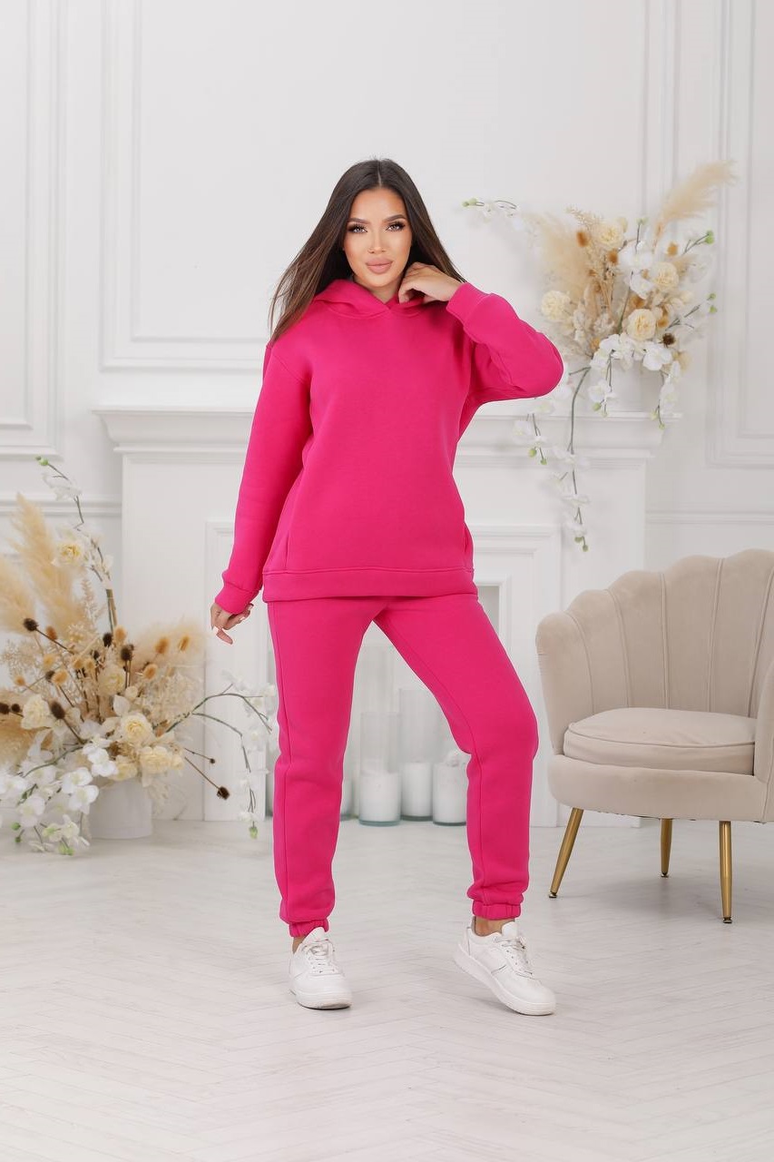 Базовый теплый костюм, брюки с высокой посадкой, свободная удлиненная кофточка с карманами.