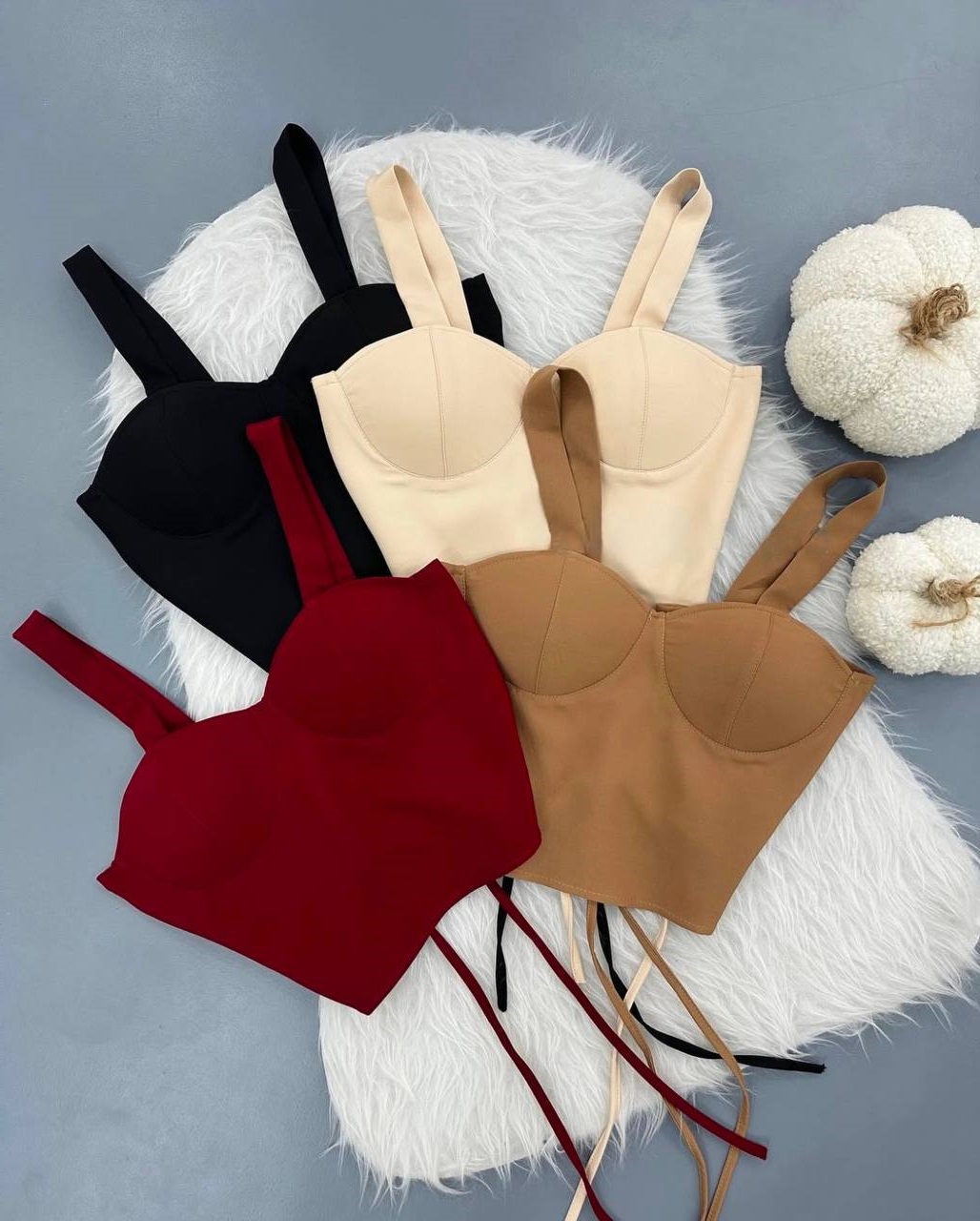 Базовый топ с чашками на бретелях+по спинке шнуровка черный