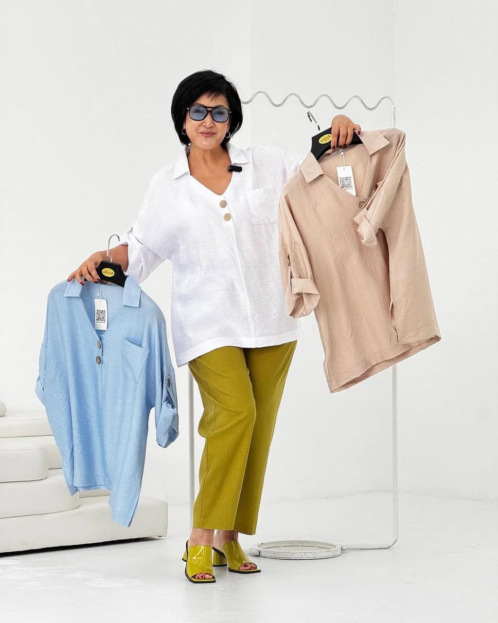 Блуза в стиле бохо, свободного кроя. Изготовленная из льна жатки, приятная к телу, не парит.