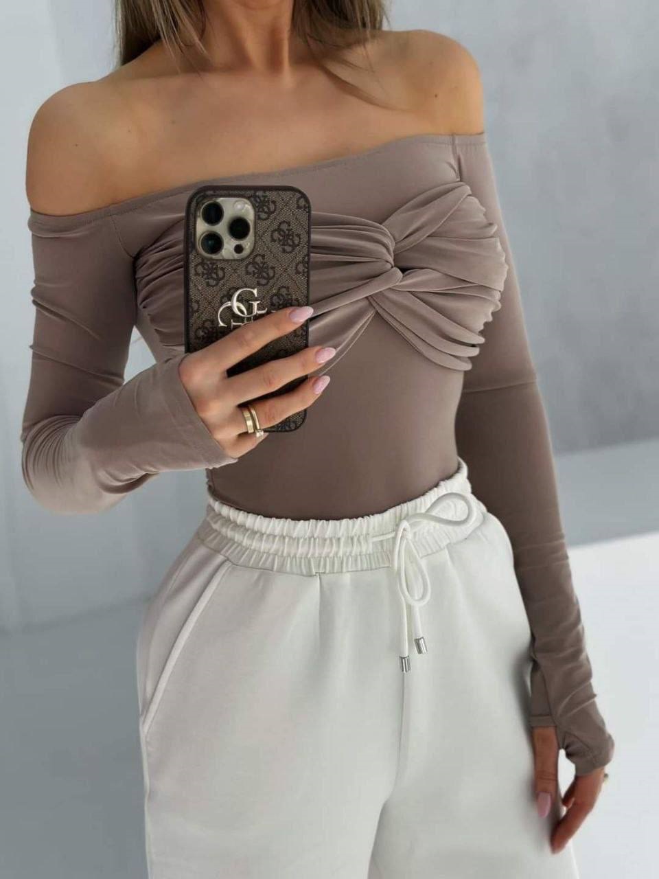 Головна » Магазин » Одяг » Верхнє тіло тіла » Боди из микродайвинга с драппировкой на груди мокко