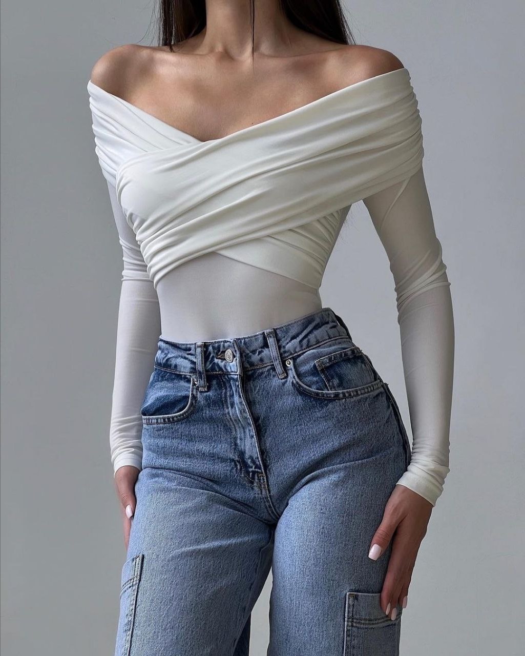 Боди с драппировкой – универсальная модель, которая будет сочетаться с любым предметом гардероба