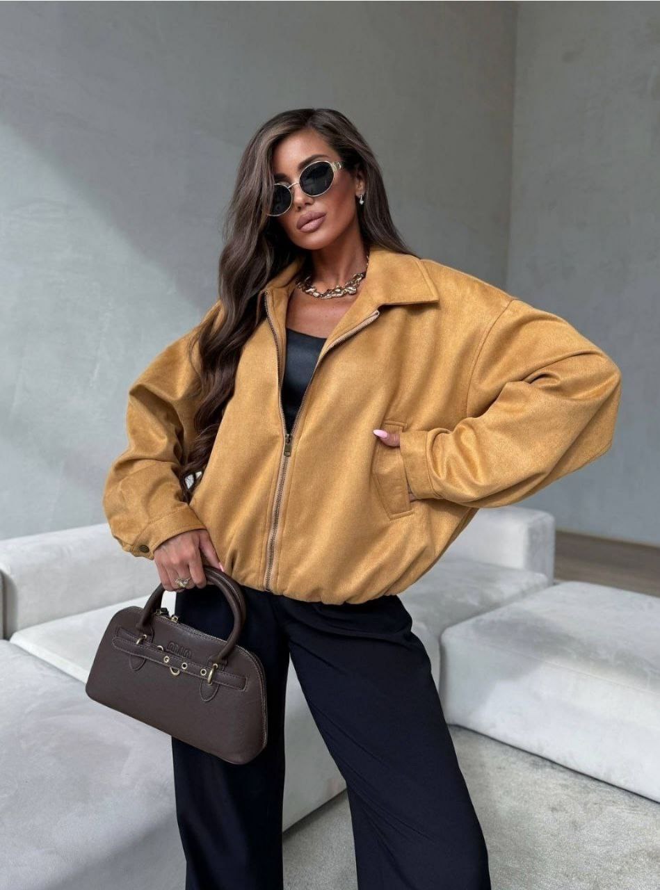 Бомбер из замши на дайвинге – упор для любого образа. Легкий и удобный, без подкладки, с функциональными карманами. Застёгивается на молнию, а низ на резинке создает идеальную посадку. Универсальная легко сочетающаяся модель с различными стилями.