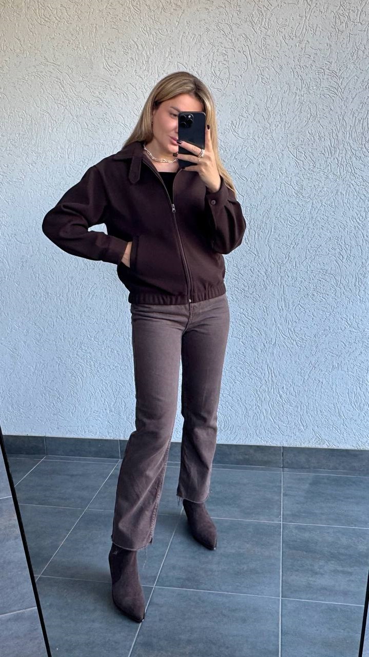 Бомбер застегивается на молнию, с двумя карманами, внизу манжета на резинке.