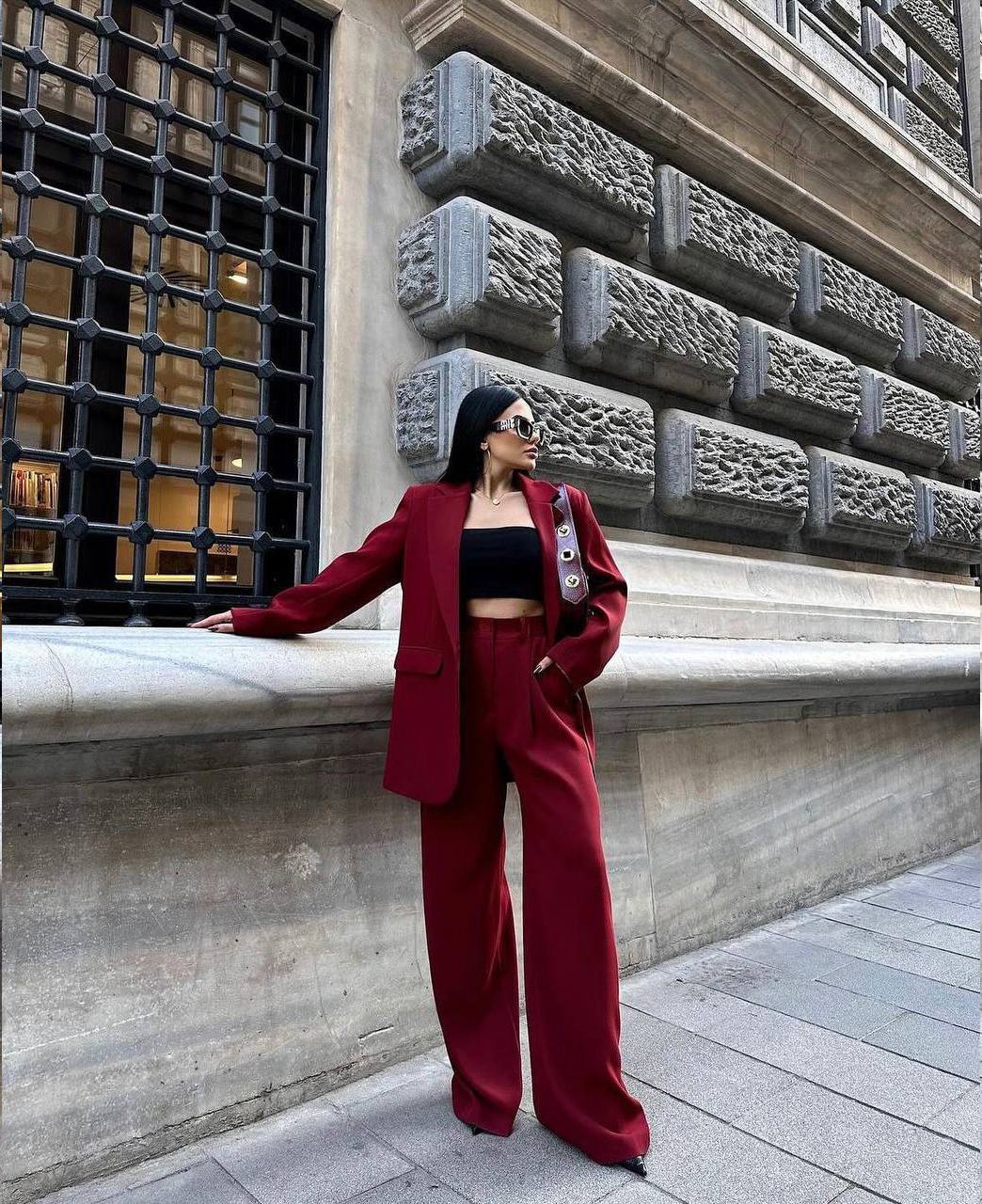 Брюки палаццо свободного кроя и пиджак оверсайз.