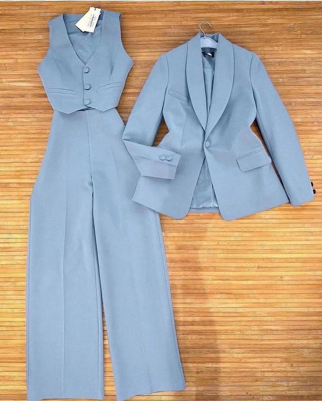 Брюки свободного кроя, жилет и пиджак хорошо садится по фигуре и подчеркивают преимущества ☺️