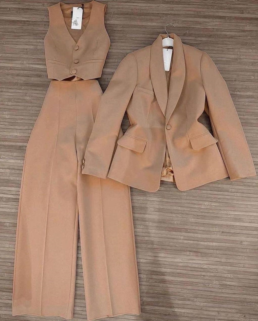 Будьте першим, хто залишив відгук “Брючный костюм тройка (жилетка+свободные брюки+пиджак) костюмка мокко”“