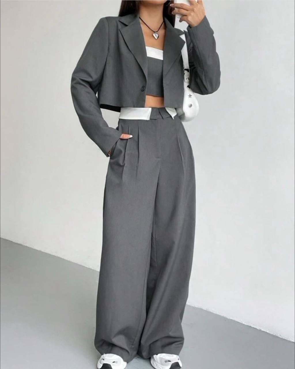 Укороченный жакет, штаны палаццо