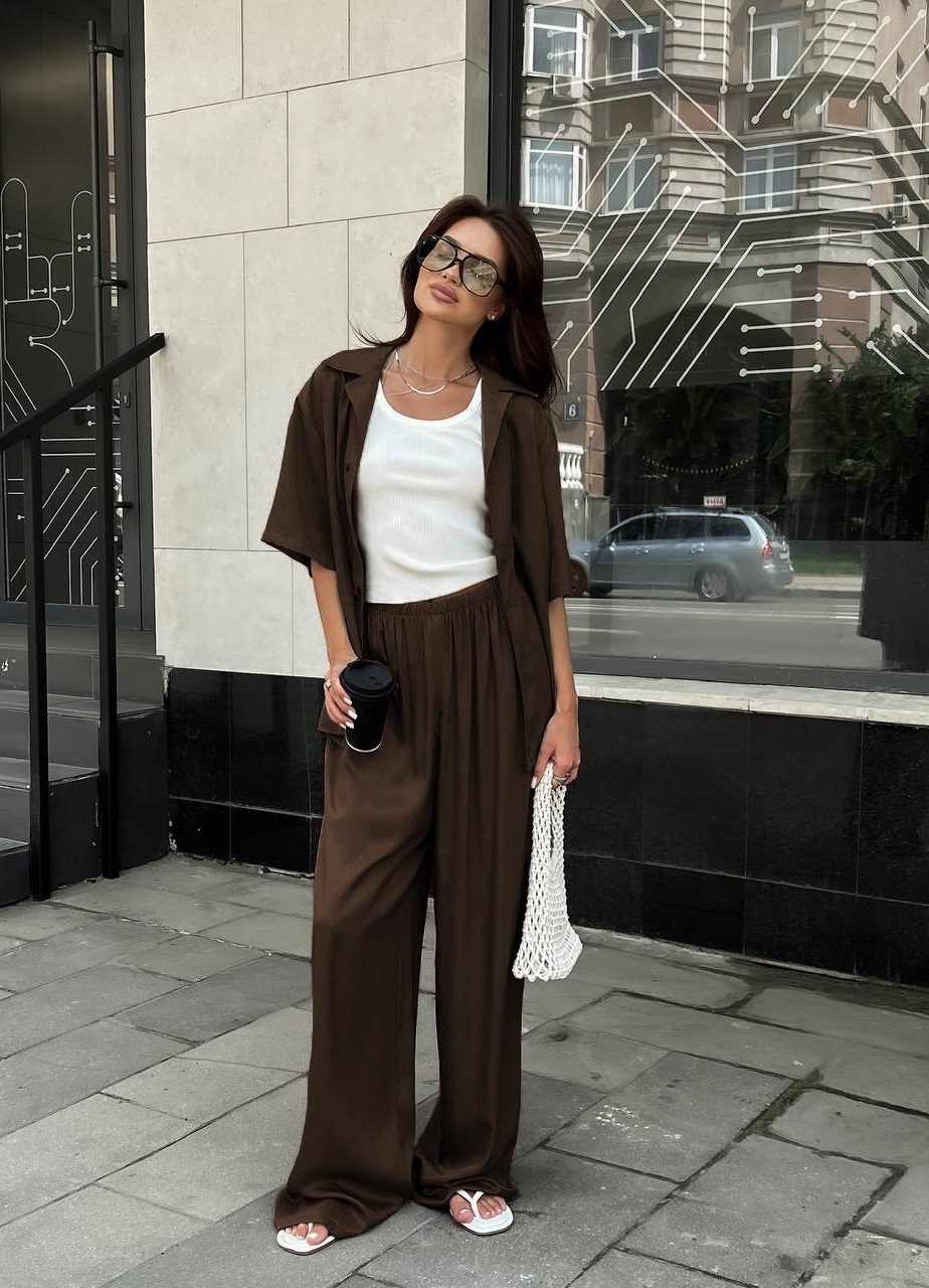 Состоит костюм из рубашки и брюк