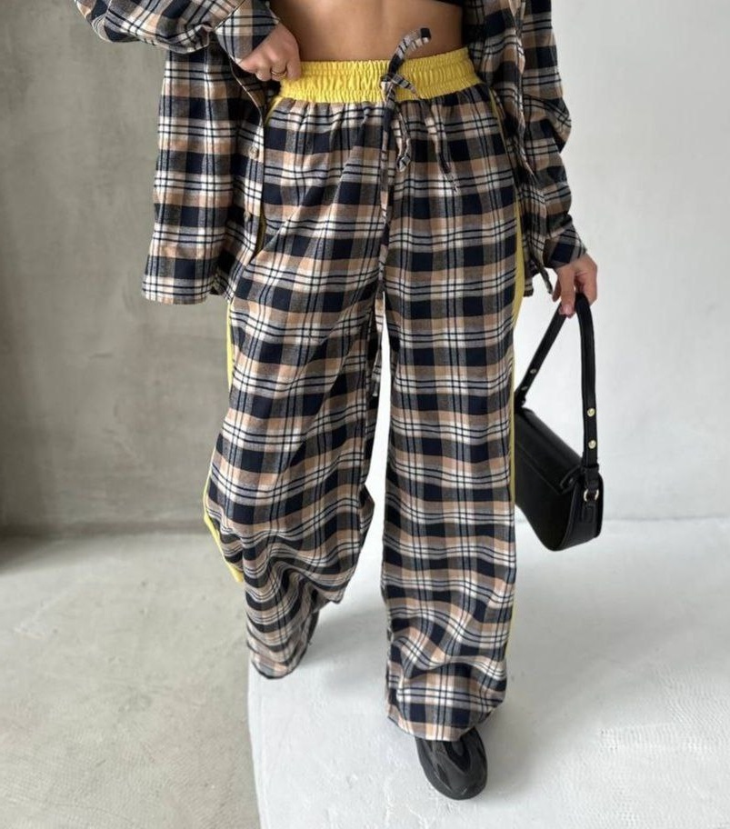 Брюки палаццо из турецкой фланели (100% хлопок). Лампас двухнить. Цвет (за лампасом) черный, желтый, белый