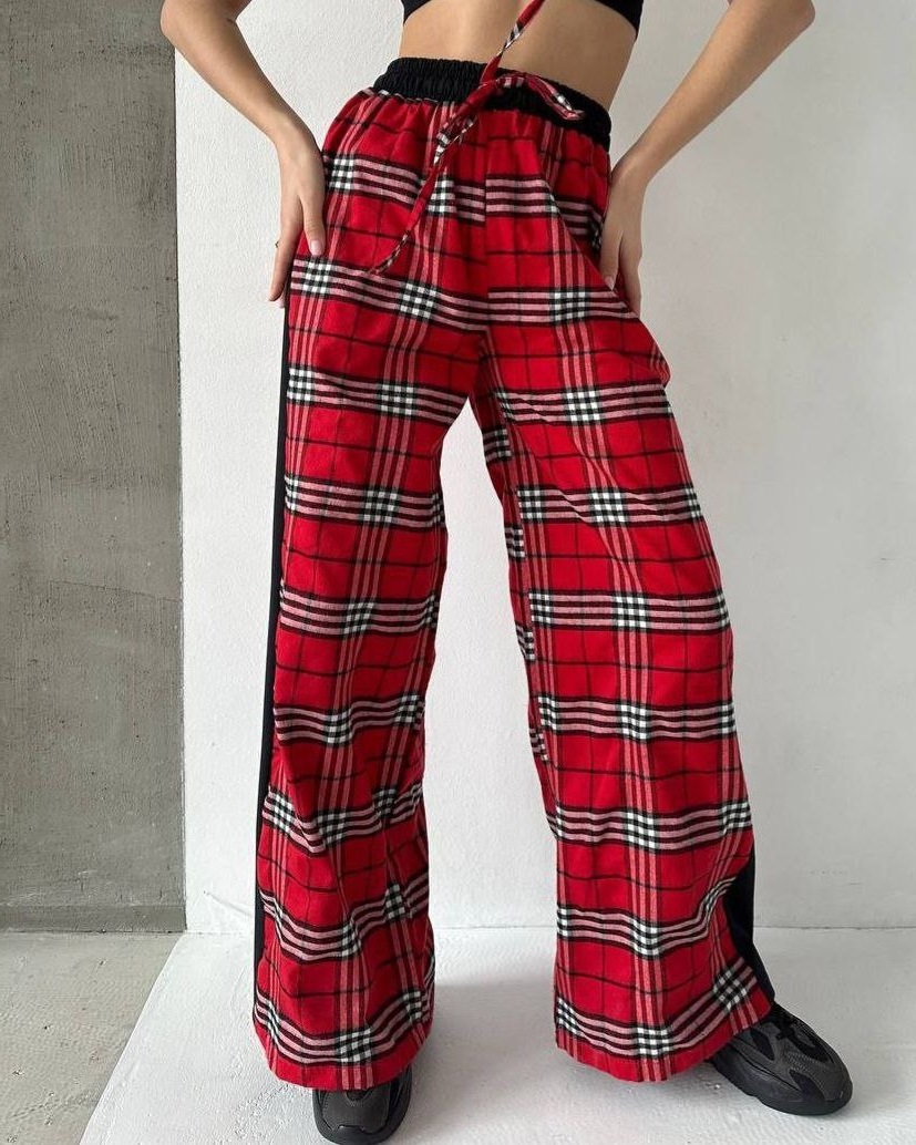 Головна » Магазин » Одяг » Жіночі штани джинси штани гетри » Брюки палаццо с лампасом красный+черный лампас