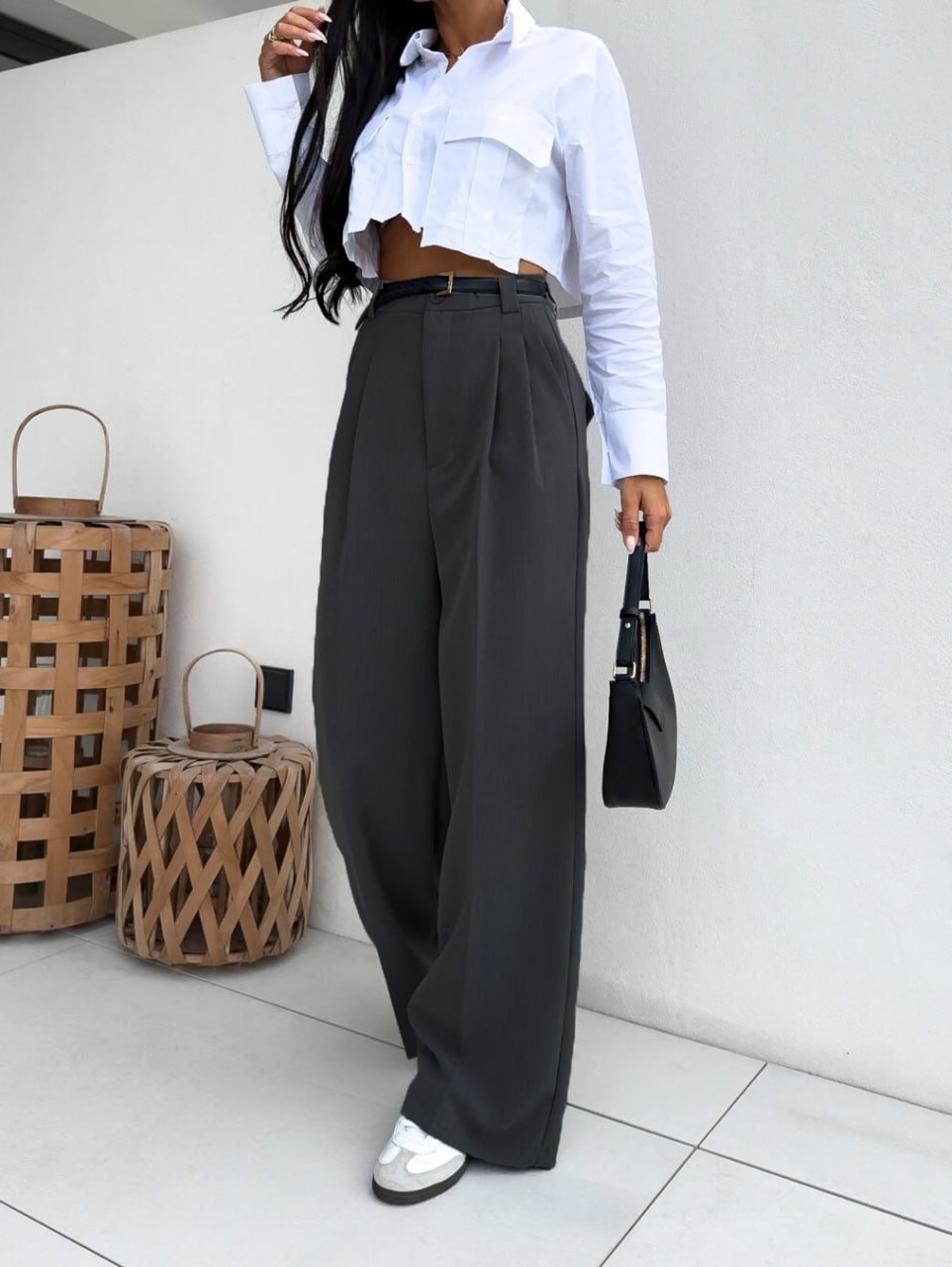 Брюки палаццо с Высокой посадкой БЕЗ ПОЯСА графит