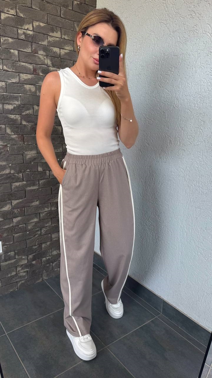 Брюки свободного кроя с кантом по бокам+карманами мокко