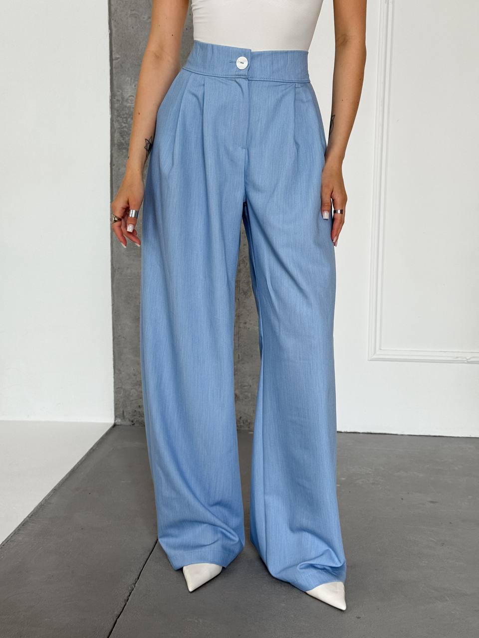 Брюки свободного кроя с резинкой на поясе голубой