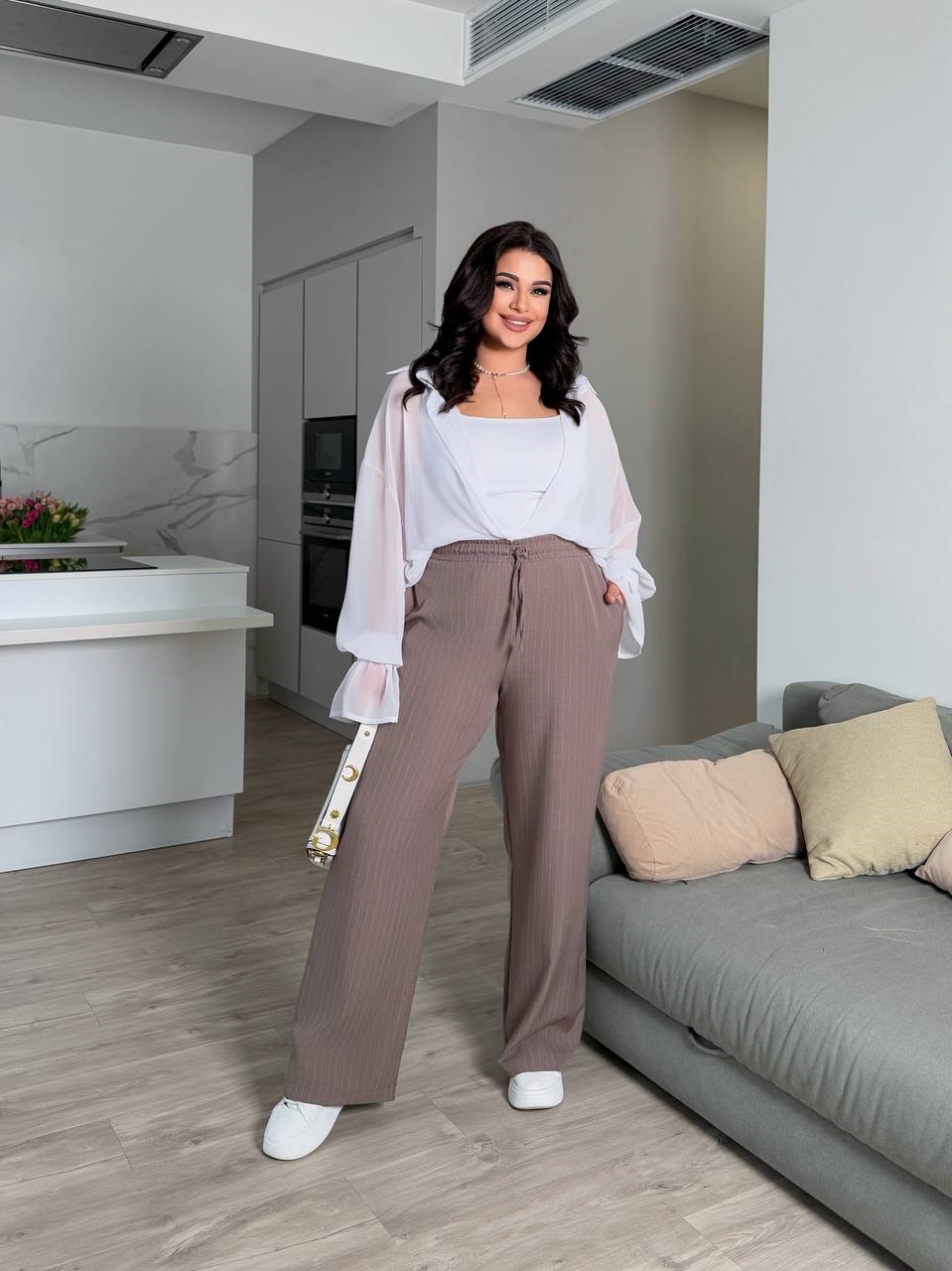 Брюки высокой посадки, с карманами. Талия на резинке и канате.