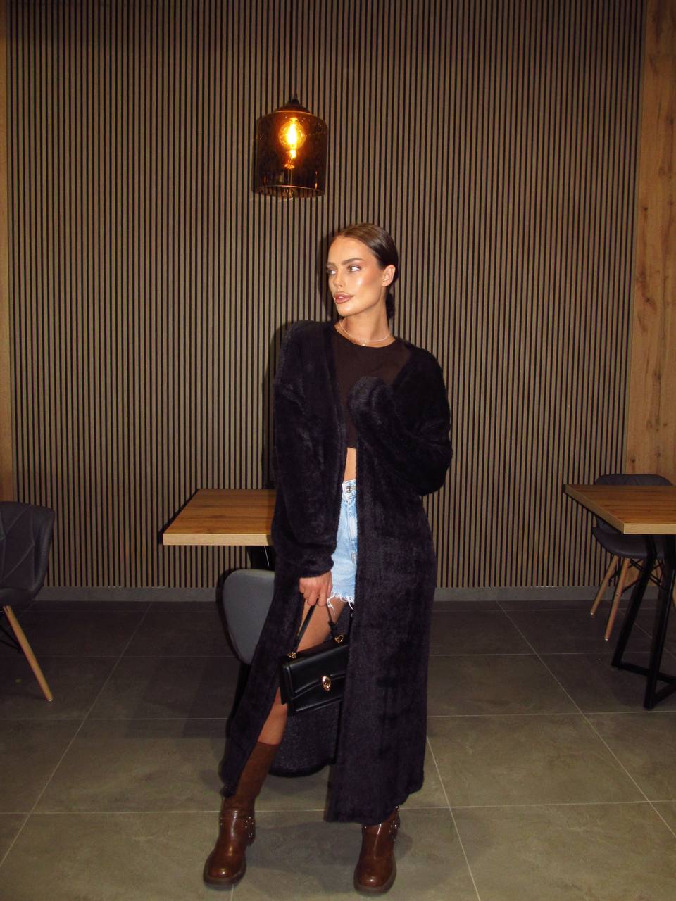 Длинный кардиган oversize с длинными рукавами (альпака) черный