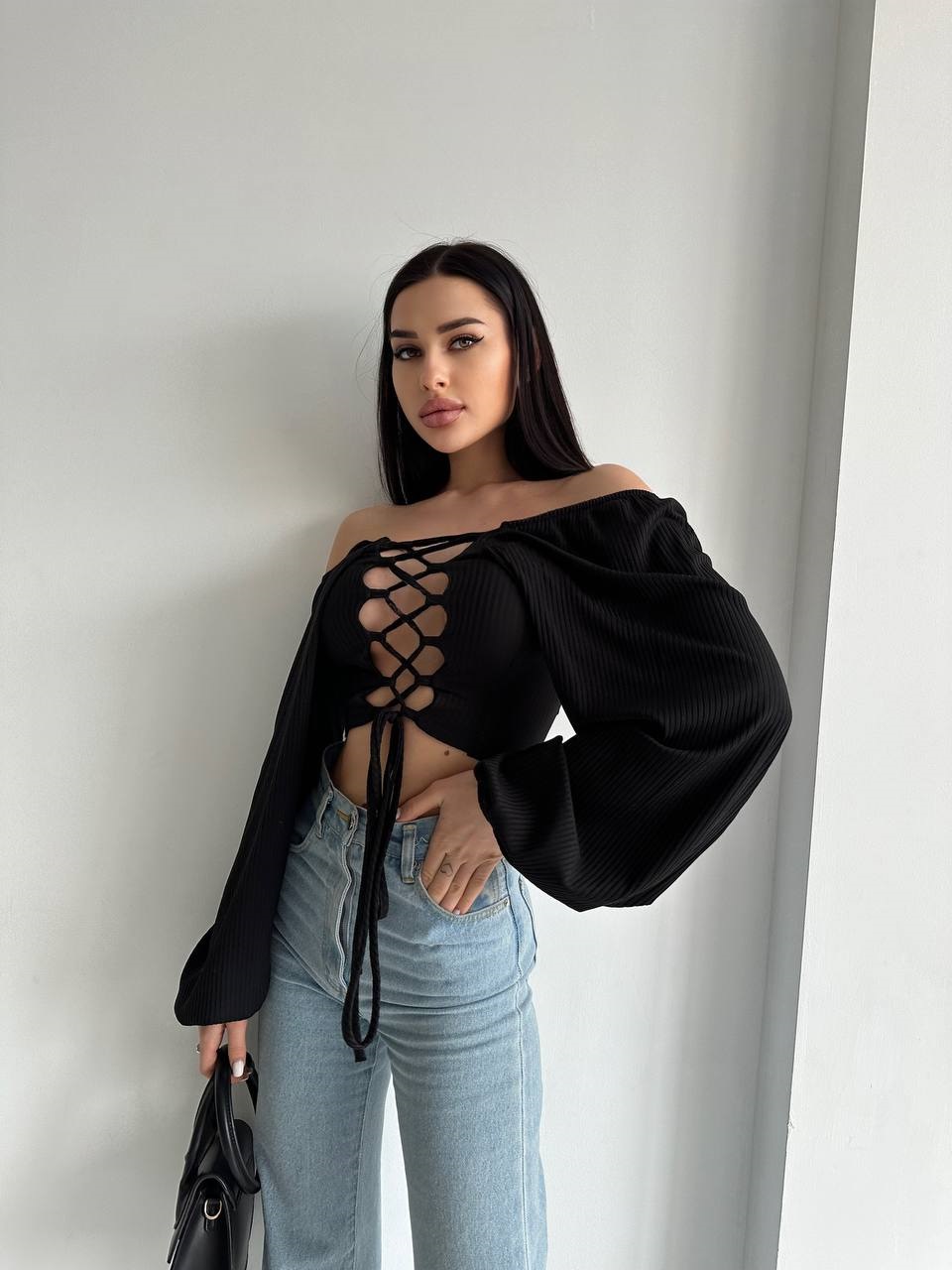 Головна » Магазин » Одяг » Верхнє тіло тіла » Двухсторонний топ с завязками черный