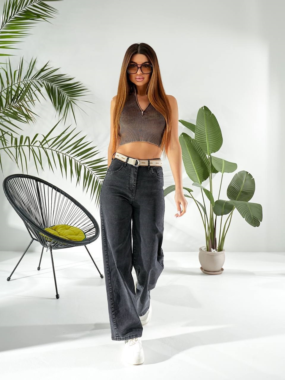 Джинси Трубы из стрейчевой ткани+ремень в комплекте черный