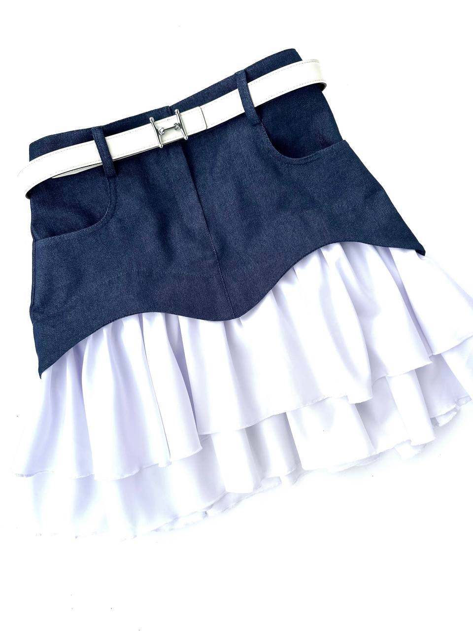 Джинсовая юбка с шелковистыми воланчиками белого цвета джинс