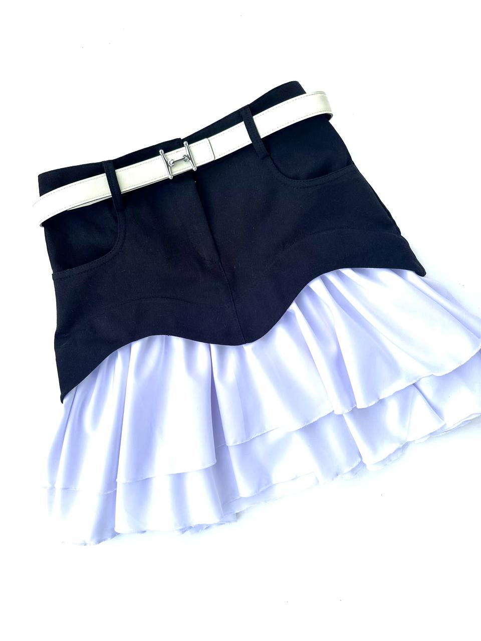 Джинсовая юбка с шелковистыми воланчиками белого цвета черный