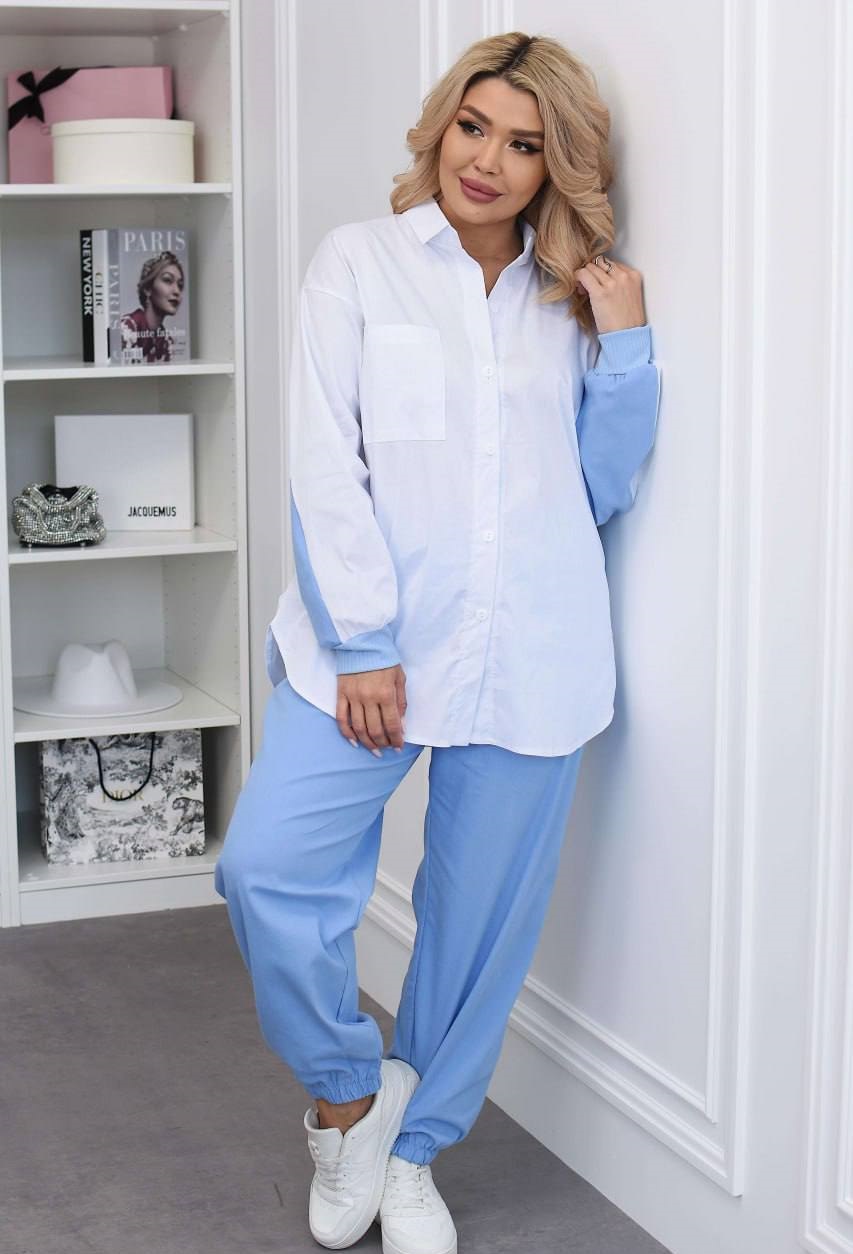 Джинсовый костюм двойка: рубашка+брюки голубой