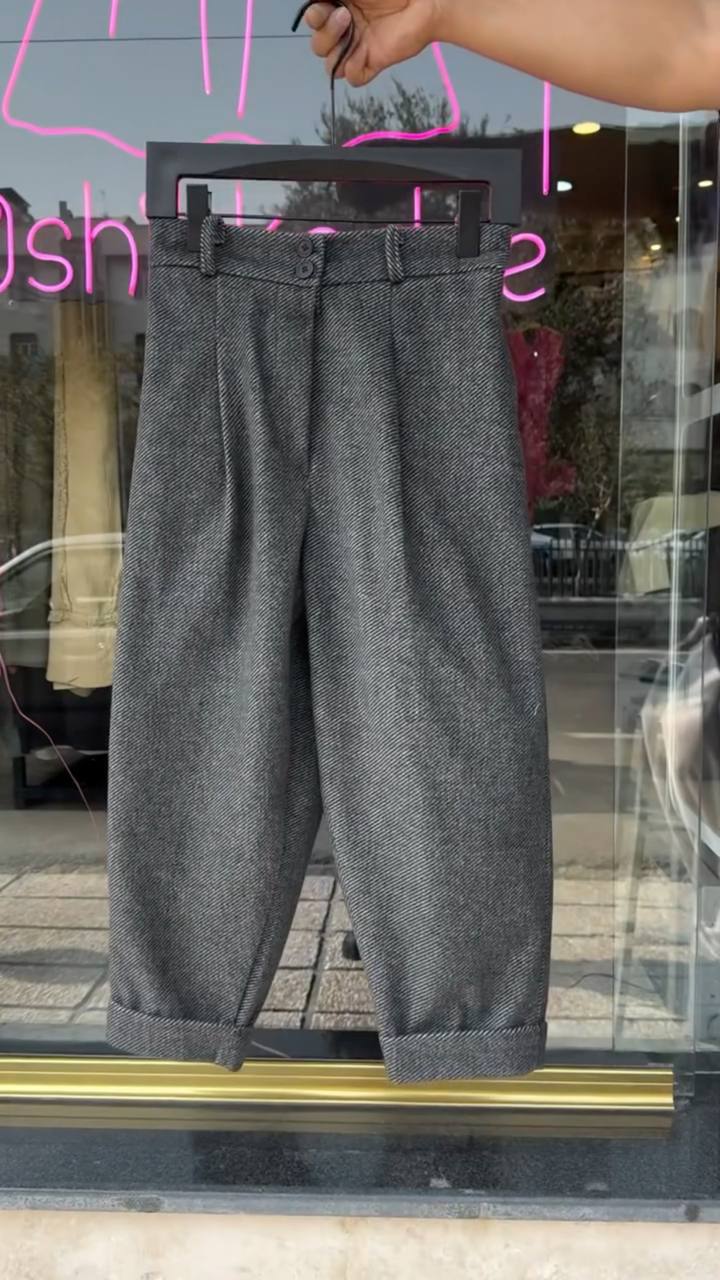 Стильные джогеры свободного кроя из фактурной ткани в узоре “елка” с диагональным плетением. Удобная посадка на резинке с дополнительной застежкой на пуговицы. Современный силуэт, объединяющий комфорт и универсальность – подойдут как для ежедневных лугов, так и для стильных прогулок.