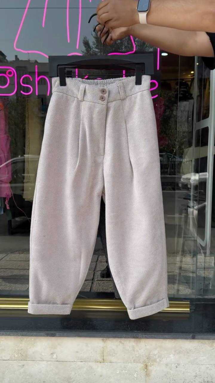 Стильные джогеры свободного кроя из фактурной ткани в узоре “елка” с диагональным плетением. Удобная посадка на резинке с дополнительной застежкой на пуговицы. Современный силуэт, объединяющий комфорт и универсальность – подойдут как для ежедневных лугов, так и для стильных прогулок.