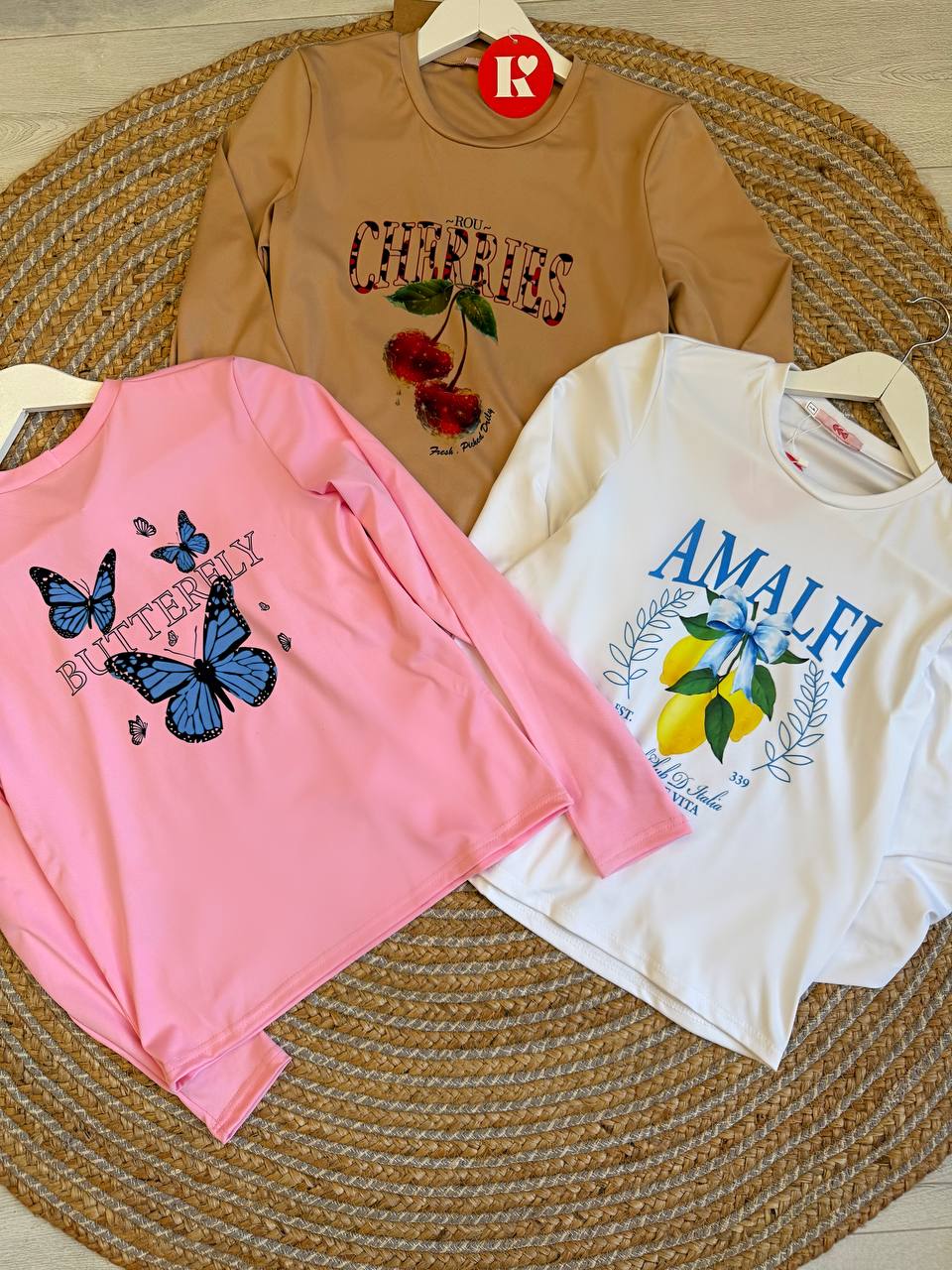 Эластичная футболка из микродайвинга с принтом БАБОЧКИ розовый