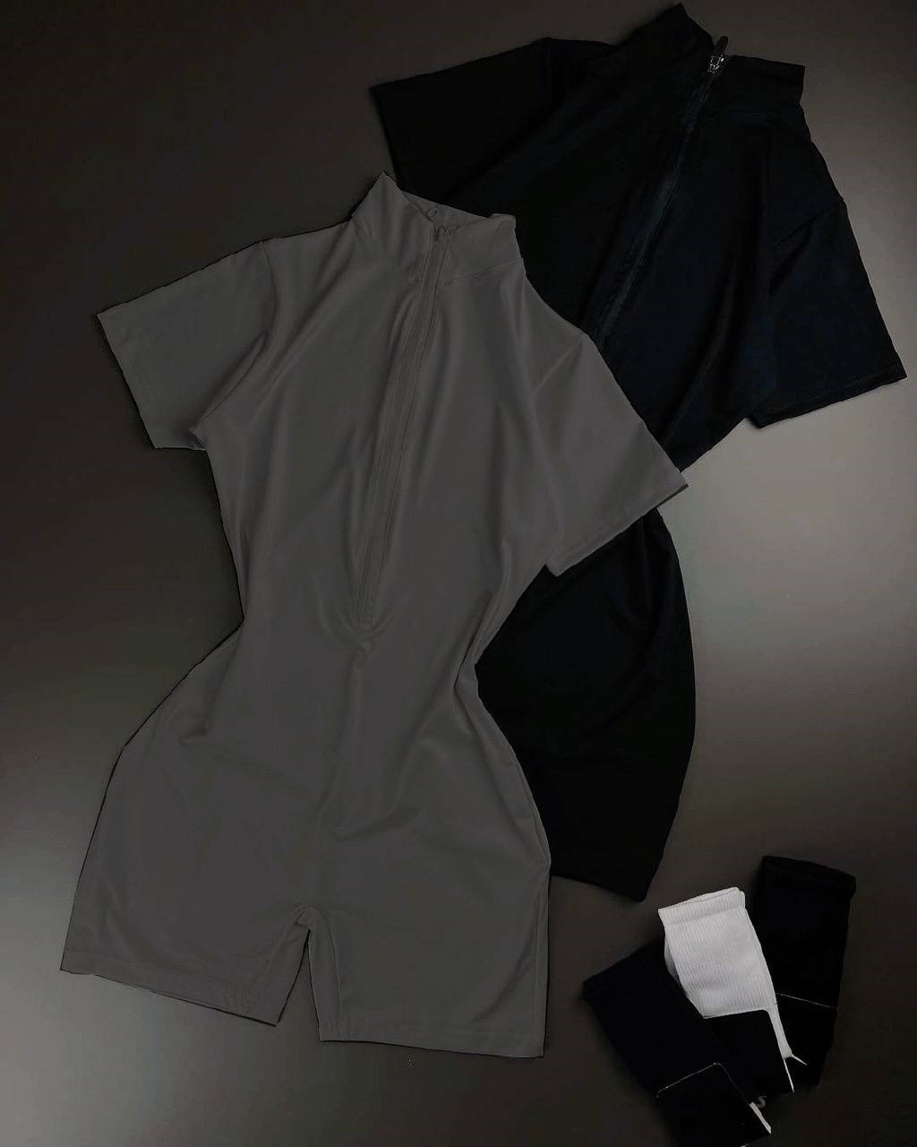 Головна » Магазин » Одяг » Комбінезон » Эластичный комбинезон по фигуре на молнии (шорты+кофточка с коротким рукавом) серый