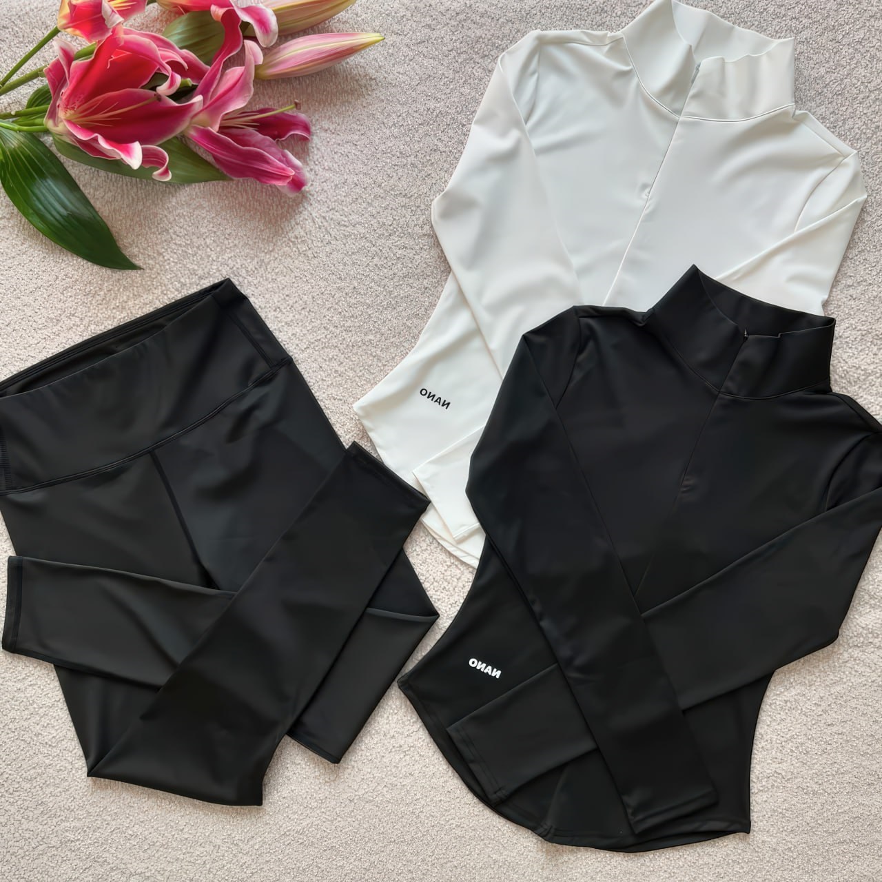 Лонгсливы с высоким воротником и леггинсы идеально садятся по фигуре, не сковывают движения и обеспечивают максимальный комфорт.