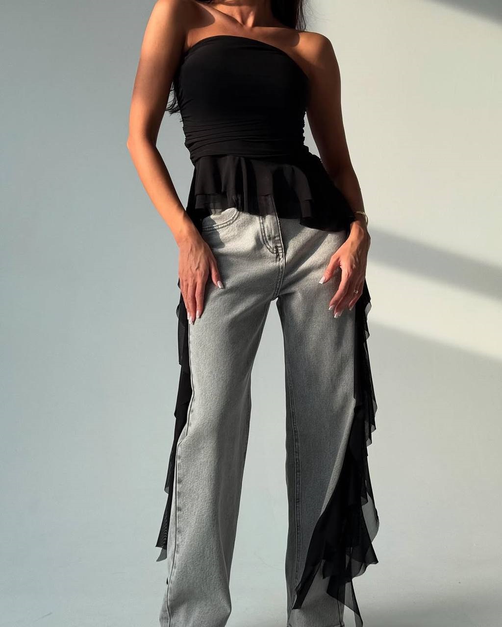 Головна » Магазин » Одяг » Верхнє тіло тіла » Эластичный женственный топ с воланами черный