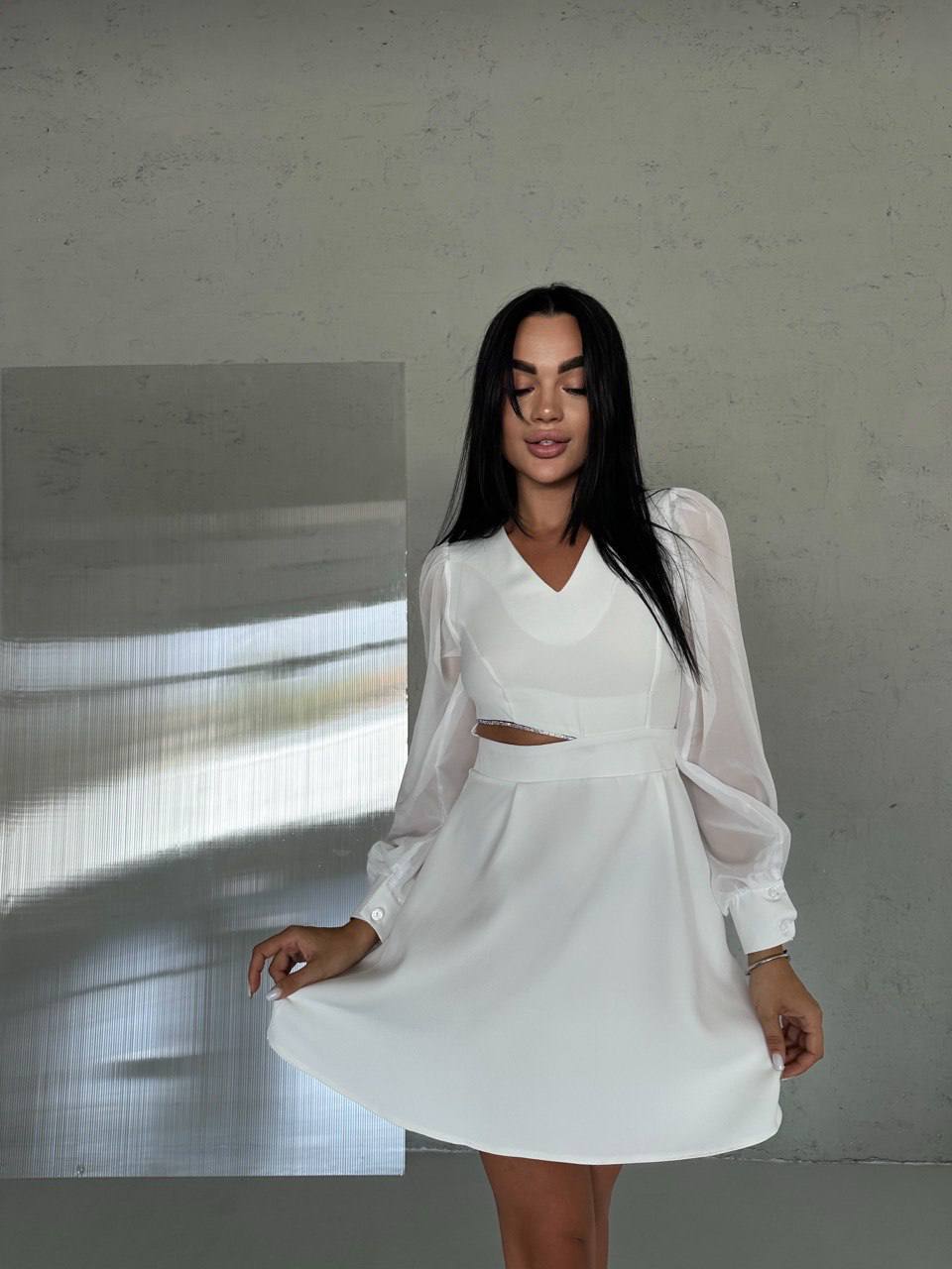 Платье с ассиметричным вырезом и шифоновыми рукавами – это прекрасный выбор для женщин, которые любят изысканность. Лёгкий шифон добавляет воздушности и очарования, а выразительный вырез акцентирует вашу индивидуальность и хороший вкус.