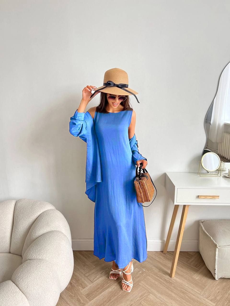 ЭЛЕГАНТНЫЙ И ЛЕГКИЙ КОСТЮМ длинное платье+рубашка голубой