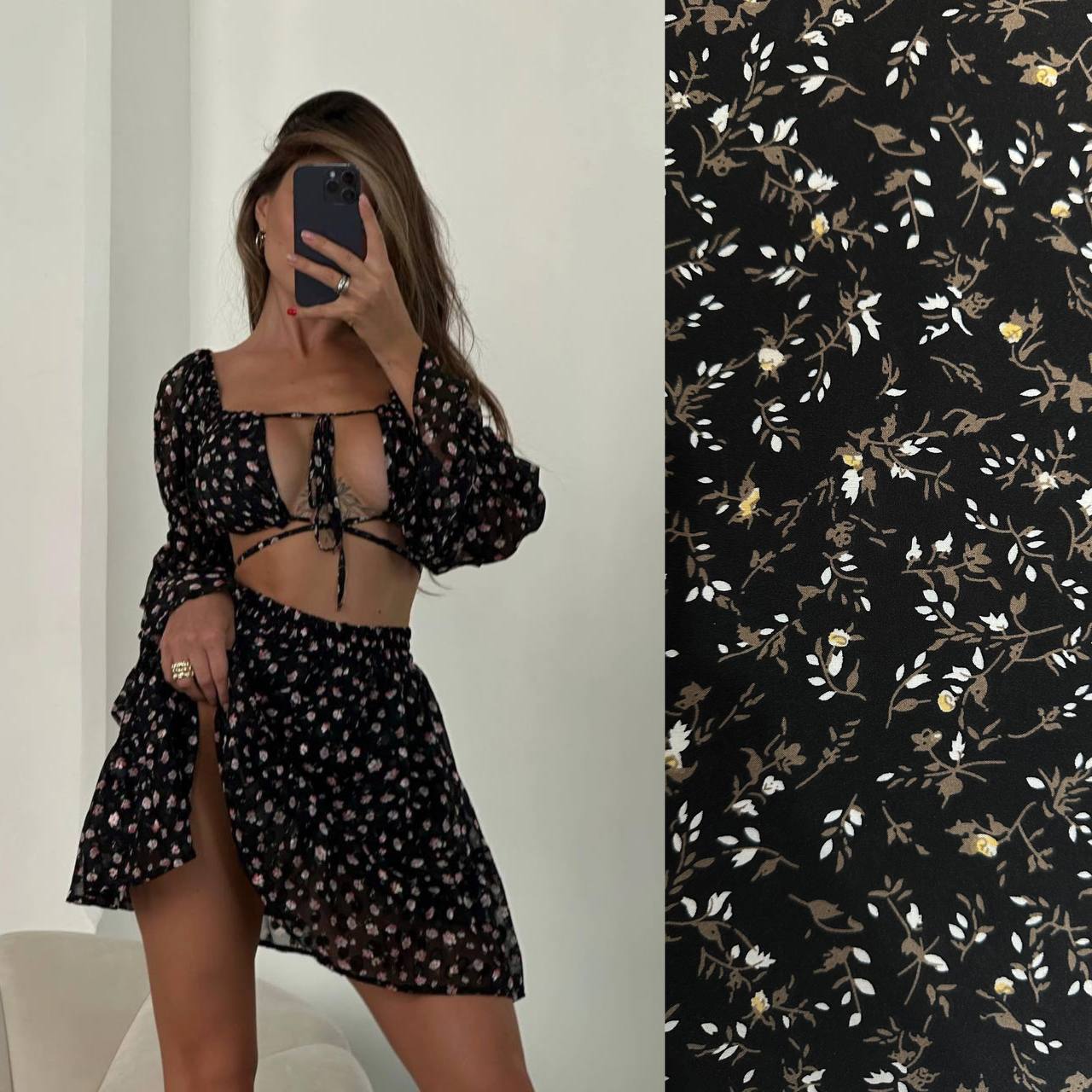 Элегантный и женственный топ с завязками, нежная и воздушная мини-юбка с высокой посадкой ✨