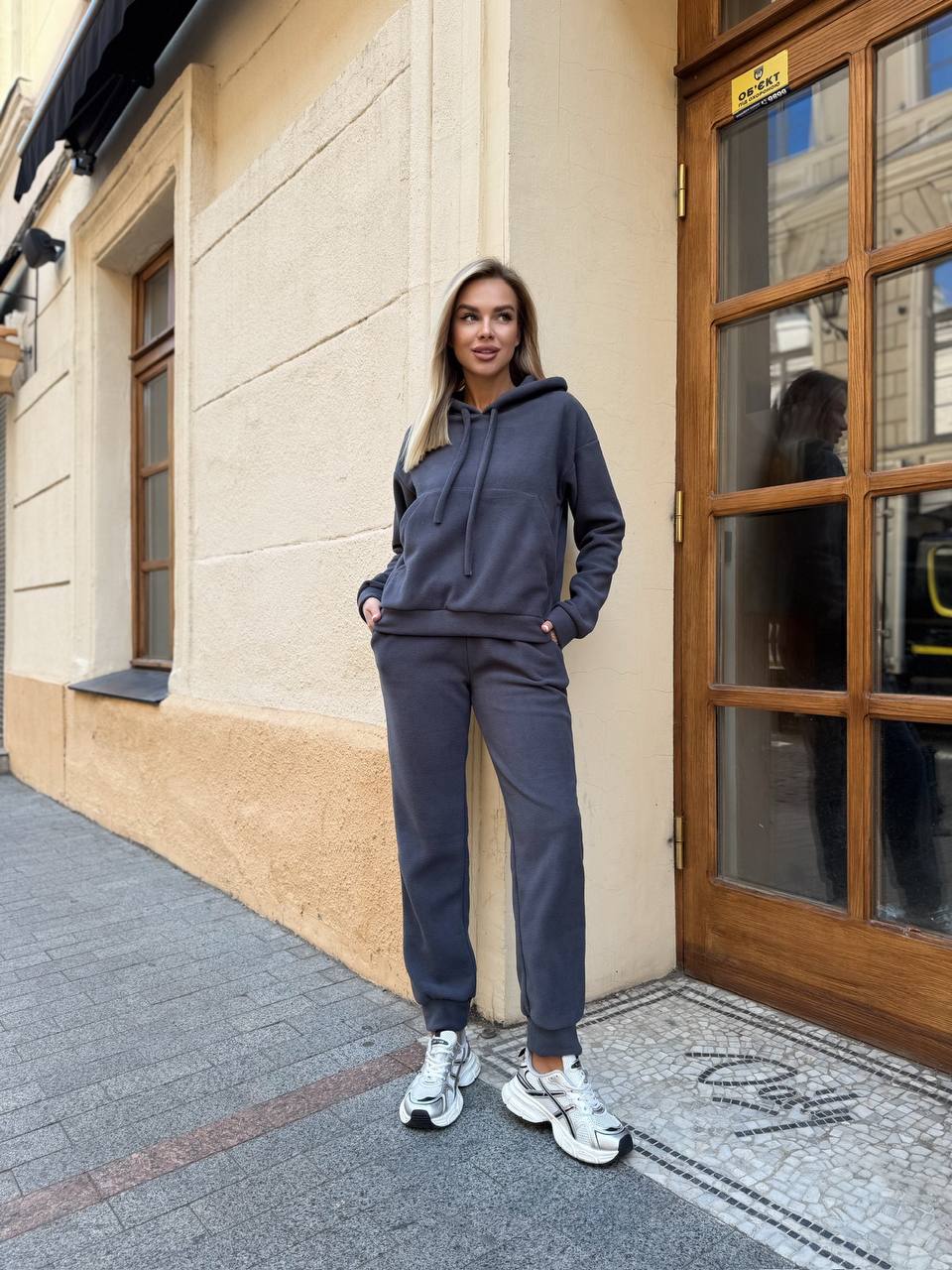 Флисовый костюм: толстовка с карманом-кенгуру+штаны графит