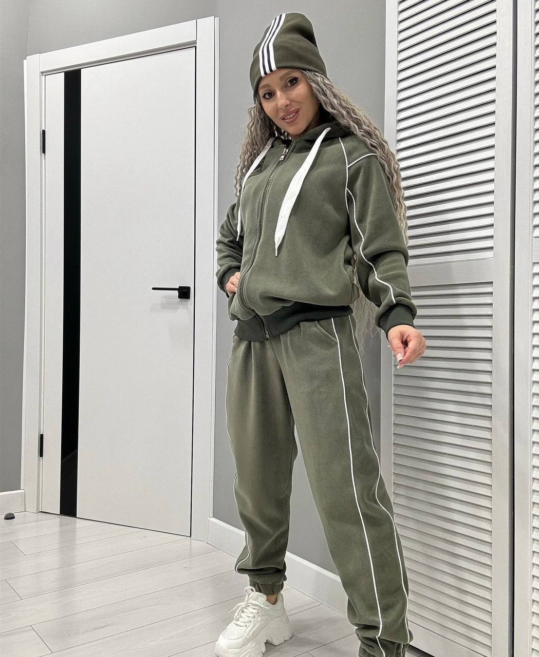 Флисовый теплый спортивный костюм (кофта с капюшоном+штаны) хаки