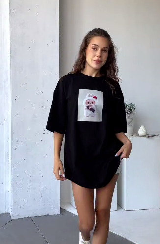 Базовая удлиненная футболка OVERSIZE с трендовым монстриком